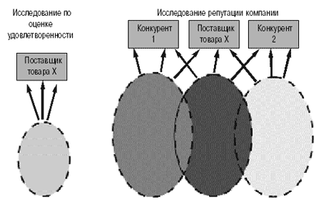 Дилемма, с которой часто сталкиваются организации: опрашивать существующих потребителей компании для выявления уровня их удовлетворенности или предпринимать более сложное исследование для выявления репутации компании на рынке? Последнее требует выборки из всех потребителей на рынке, чтобы получить сравнительную оценку своей организации с конкурентами.