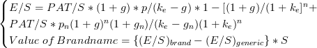 (V/S)g = отношение стоимости компании, продающей небрендированную продукцию к ее объему продаж.