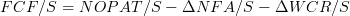 Выразим величину свободного денежного потока через балансовые показатели и разделим выражение на величину продаж, предполагая, что (WCR+NFA)/S постоянно (WCR — working capital requirements — чистый оборотный капитал, NFA — net fixed assets — чистые основные средства, S — sales — выручка):