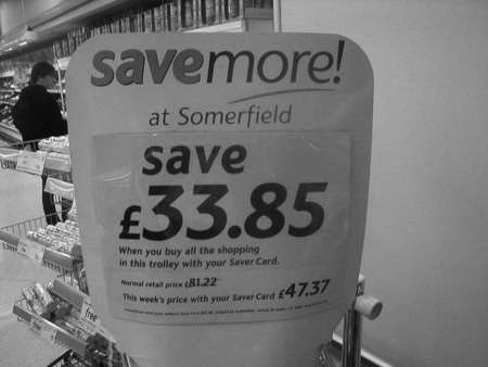 Еще одно интересное решение. На фотографии вы видите обыкновенную тележку, куда складывается корзина не очень ходовых товаров с большой скидкой. Бюджет размещенного на ней POSM — минимальный. Взят пластик или картон с пластиковым кармашком под смену информации, и очень крупно, контрастно написано, что здесь находится спецпредложение. Если человек заинтересовался данным предложением, ему не нужно самому набирать с полок входящий в него товар. В спецпредложение не надо класть обувной крем и подсолнечное масло одновременно, в него могут входить только схожие товары. Для повышения лояльности желательно подобные скидки предлагать только тем покупателям, которые имеют карточку данной торговой точки. В тележке также могут находится и ходовые товары, ассортимент, которых может меняться исходя из разных событий: продукты к новогоднему столу или товары для генеральной уборки квартиры или дачи после зимы. Набор для туриста или для очередной поездки на шашлыки. Это могут быть не только продукты питания и промышленные товары, но и лекарственные препараты, собранные в одной упаковке для определенных случаев: для путешествия в жаркие страны, для туристических походов, для дальних поездок или например в яркой и красивой упаковке необходимые препараты для ребенка, который едет в детский лагерь. (рис. 5)